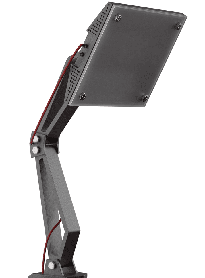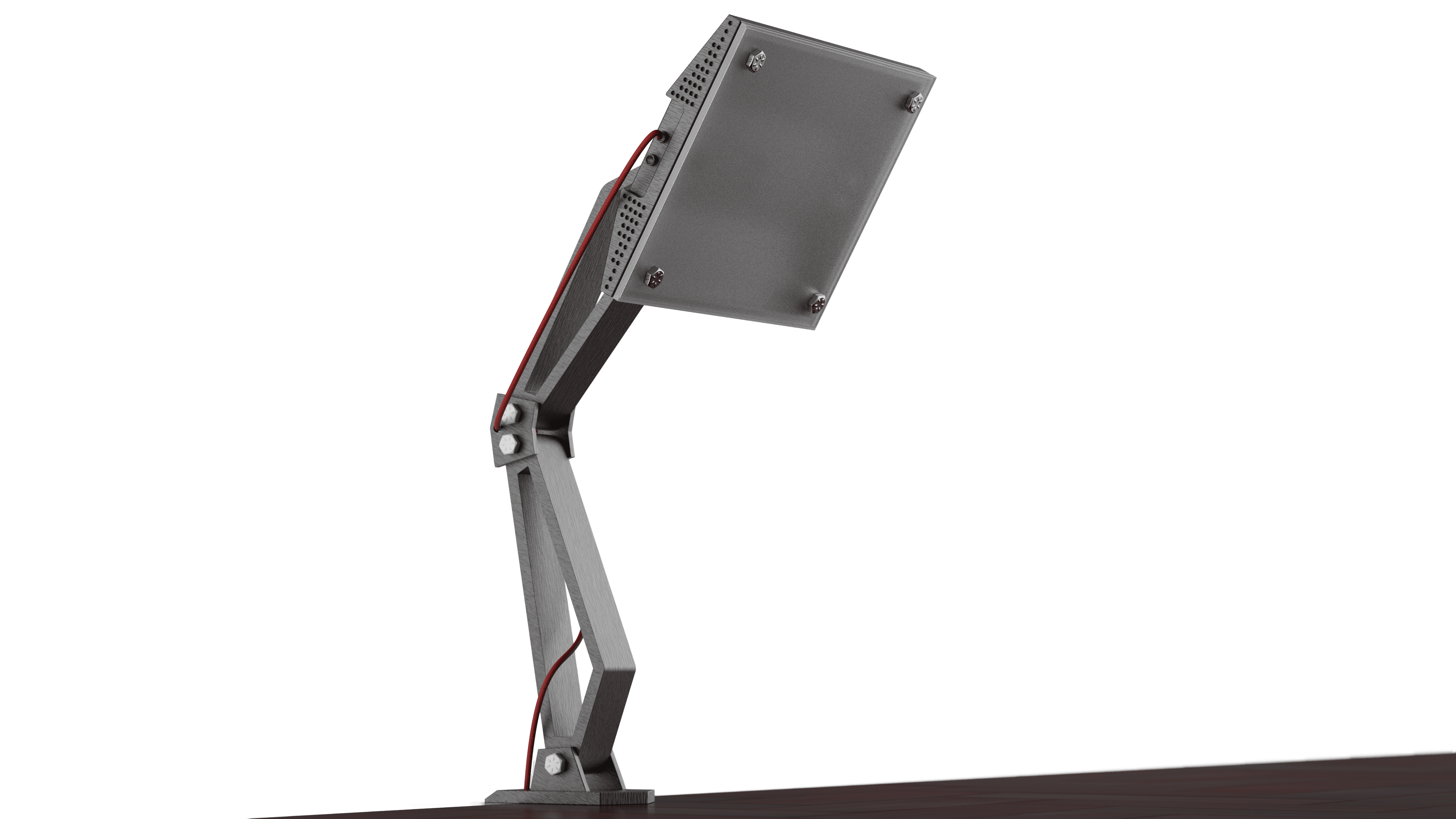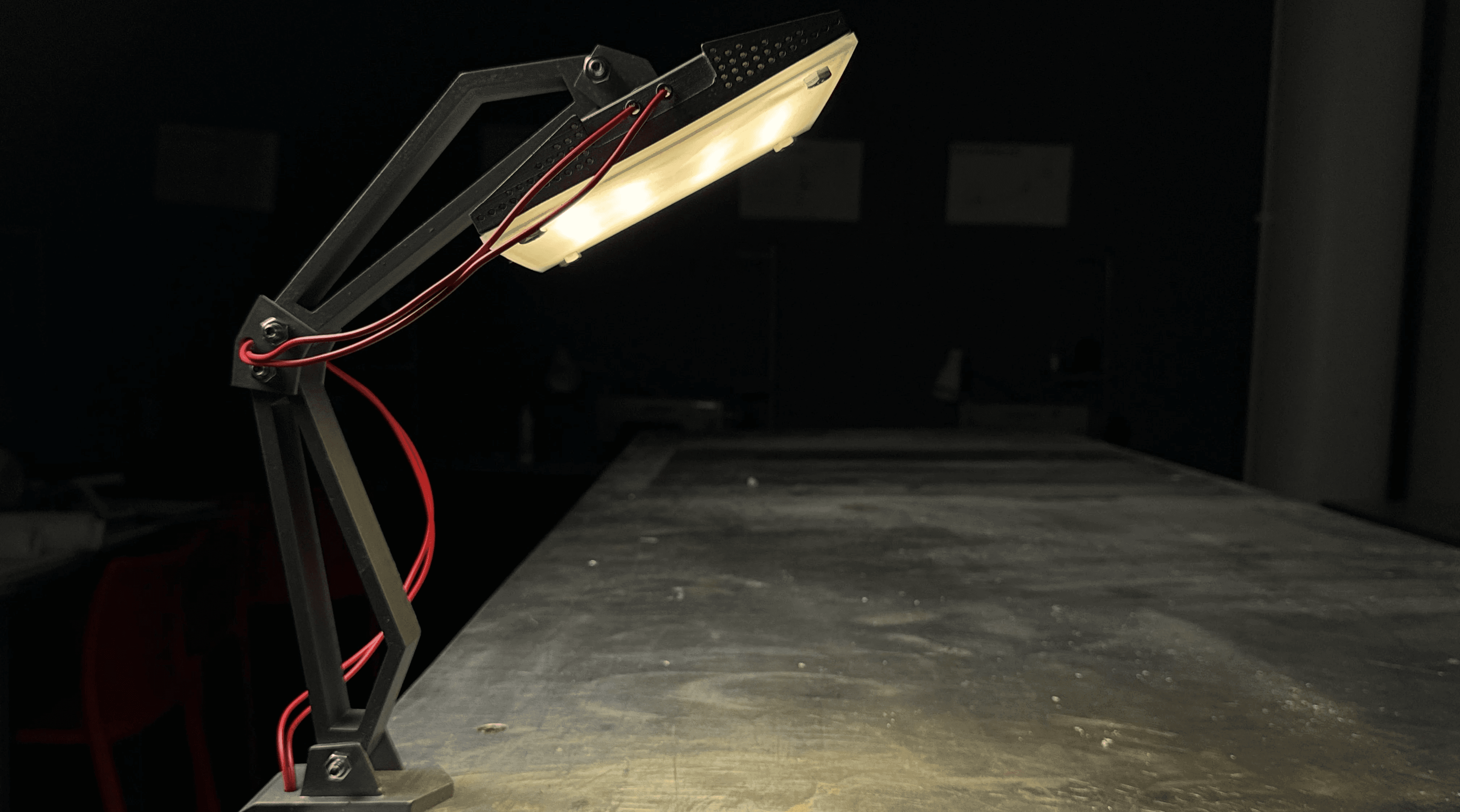 A battery operated, desktop mounted utility lamp designed for creatives who require flexibility in their workspace. Its fully articulated body allows for quick, precise adjustments, making it easy to adapt to changing tasks and lighting needs.