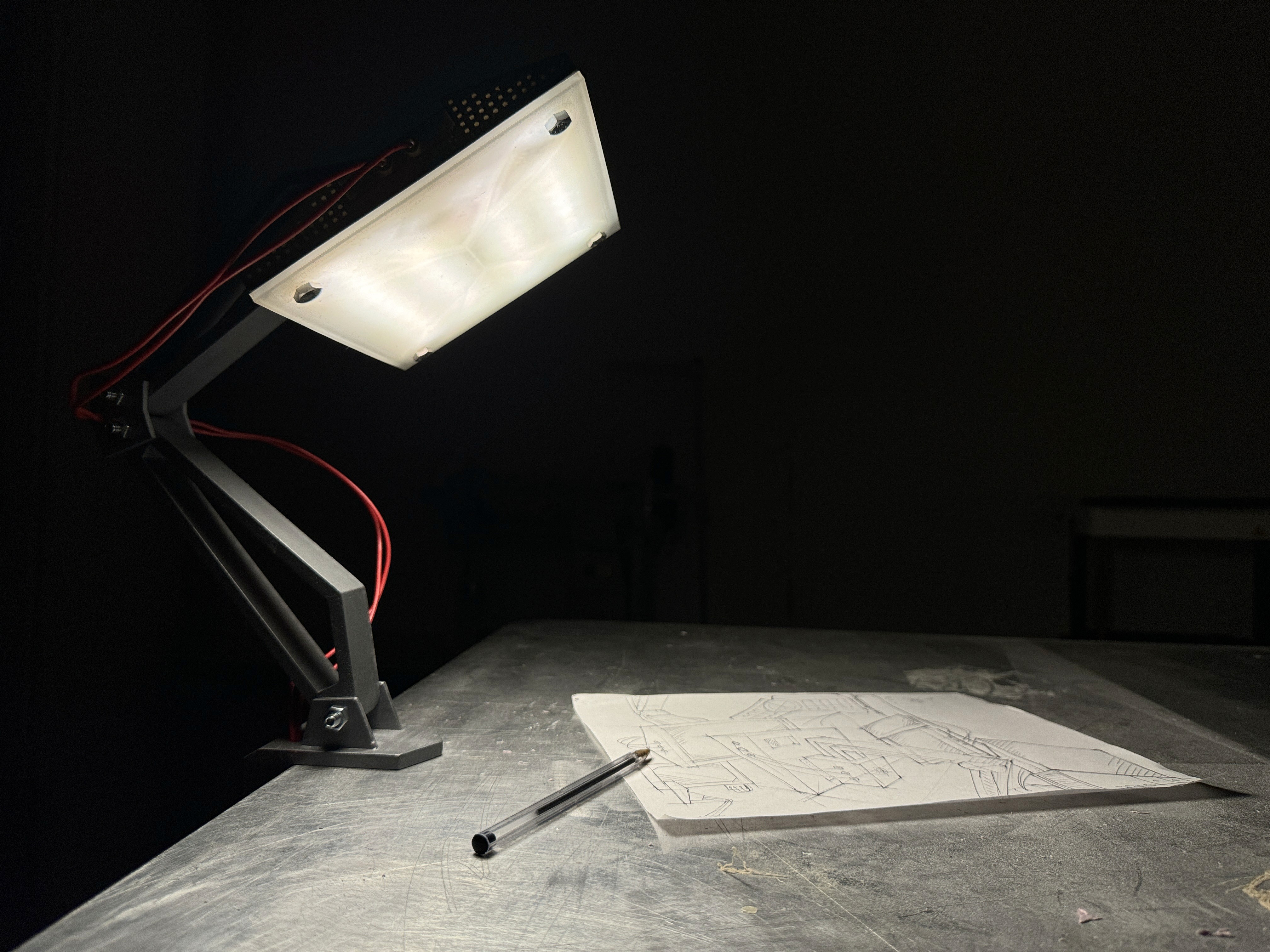 key elements were refined during this stage, including reworking connections between the foot and arm and introducing a diffuser plane to better control the light.