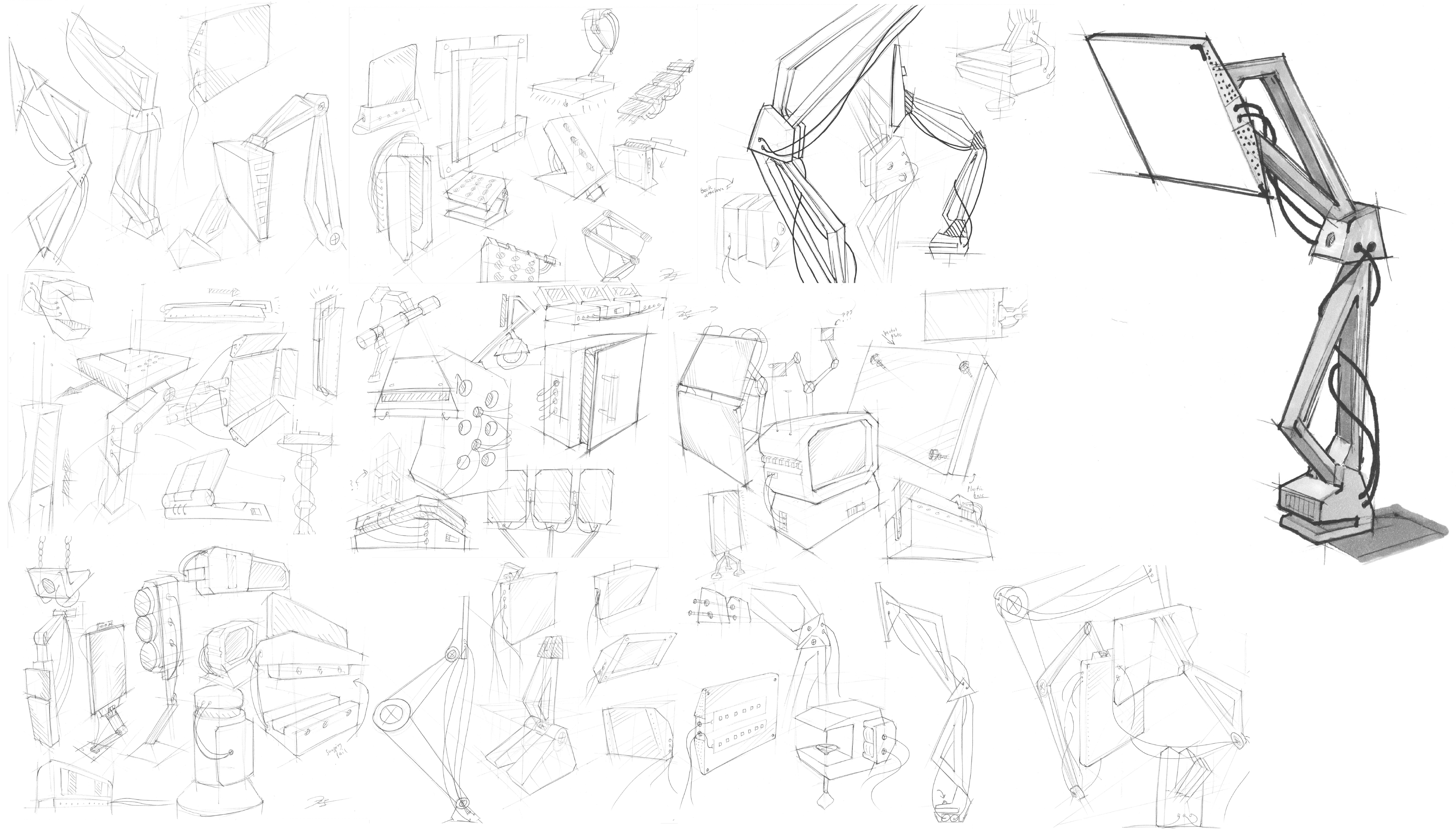 Sketching was used as a tool to study object forms, allowing one to test ideas quickly and develop a clear visual direction before moving into refinement phases.